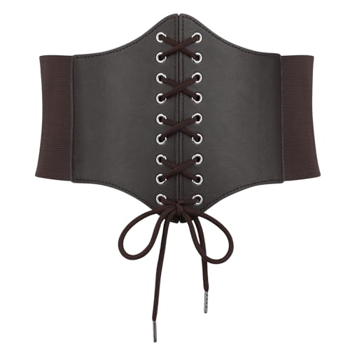 TRIWORKS Dam korsett bälte snörkorsett elastisk pirat korsett brett band Tied Waspie midja kostym, BRUN, Passende Taille 23"-26"}