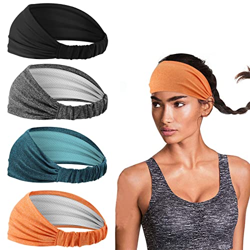 BELEVO Hårband, dam, extra brett pannband, dam, tunt, 18 cm, hårband, elastiska pannband, mjuka hårband, hårsmycke för yoga, sport, 4 stycken