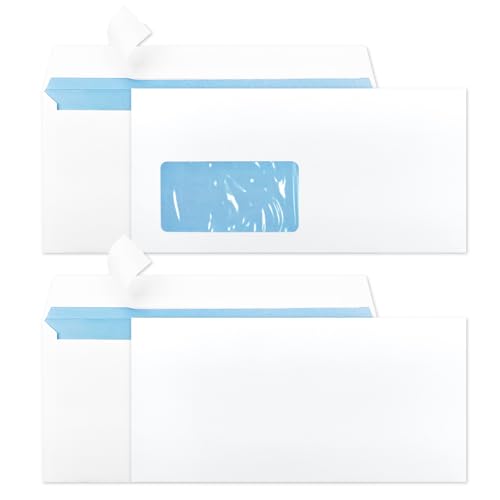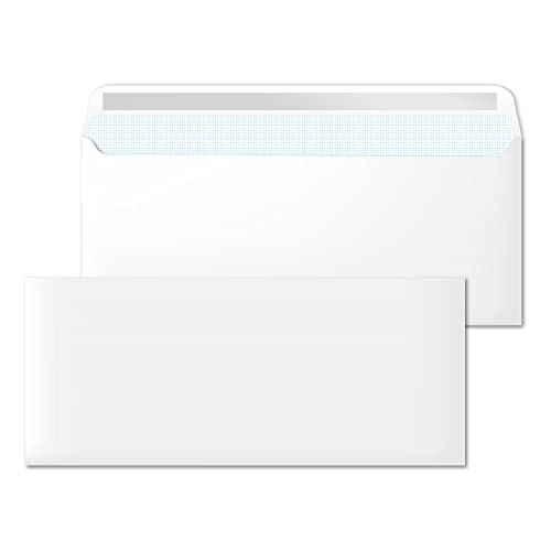RAYLU PAPER - Förpackning med vita kuvert i papper med självhäftande förslutning för att skicka dokument och brev, enkel försegling, 90 g/m² tjockt (amerikanskt, 500 stycken)