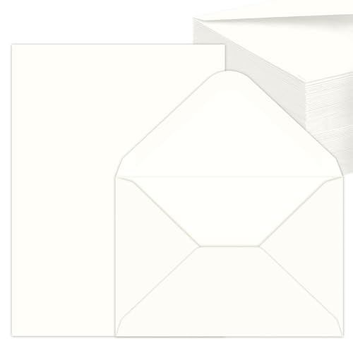 50 uppsättningar kraftbrevkuvert med tomma hopfällbara kort, kuvert för brev och papper för hantverk, inbjudningar, gratulationskort, tacksägelsekort, DIN C6/A5, vit