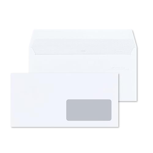 RAYLU PAPER - Förpackning med vita kuvert i papper med självhäftande förslutning för att skicka dokument och brev, enkel försegling, tjocklek 90 g/m² (DL, 500 stycken - Der fönster)