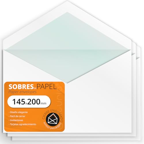 RAYLU PAPER - Förpackning med vita kuvert i papper med självhäftande förslutning för att skicka dokument och brev, enkel försegling, 90 g/m² tjock (10 st, kommersiell)