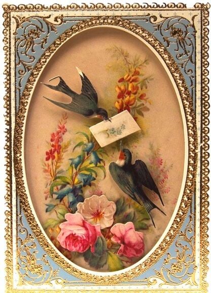 Vackert kort med kuvert - Svalor med brev (Fraktfritt)