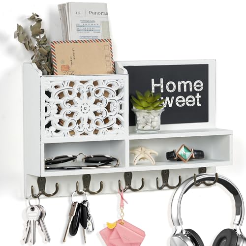 QILICZ Nyckelbräda trä med hylla, nyckelhållare vägghylla för nyckelhylla europeisk urholkning brevhållare, nyckelförvaring, krittavla och 10 krokar – vägggarderob vit