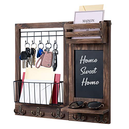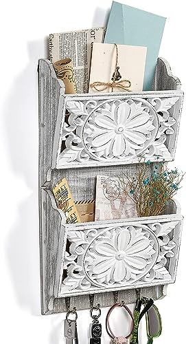 Optyuwah 2 lager nyckelhållare för vägg, brevhållare i trä, tidskriftsorganisatör med nyckelkrokar, rustik dekor nyckelhängare väggmonterad brevhållare för entré lera, hem, kök, kontor