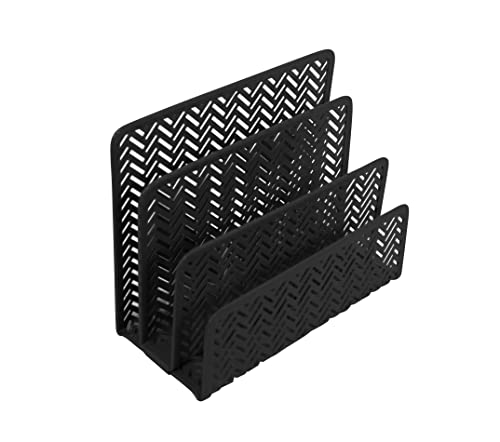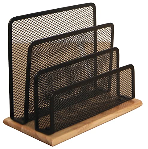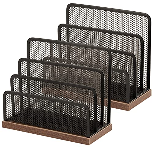 Trä skrivbordsbrevorganisatör, skrivbordsfilorganiserare metallnät med 3 vertikala upprättstående fack, brevsorterare, ställ för bokstäver, vykort, broschyrer, brevhållare (2 st svart)