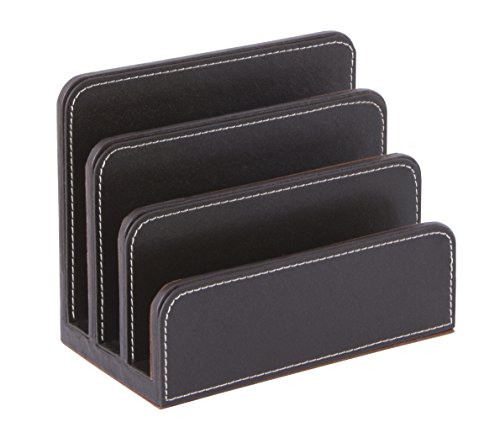 OSCO Brevhållare i brunt fuskläder | Brevsorterare | Postställ | Kuvertorganiserare | dokumentstativ | skrivbordsfilförvaring | visningsfack | H 14 x B 17,5 D10 cm |