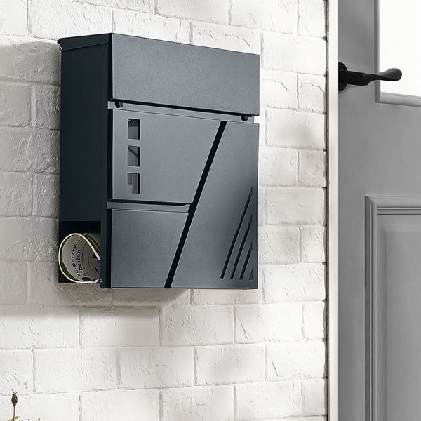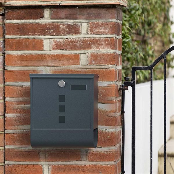 Väggmonterad brevlåda med lås och namnskylt - Grå