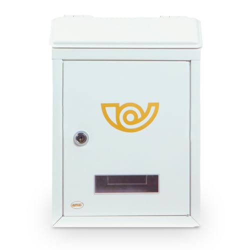 Amig - Utvändig brevlåda, mini - Tillverkad i legerat stål - Mått: 29,5 x 21 x 6,2 cm - Tar emot post säkert - Enkel installation - Inkluderar 2 nycklar - Färg: Vit