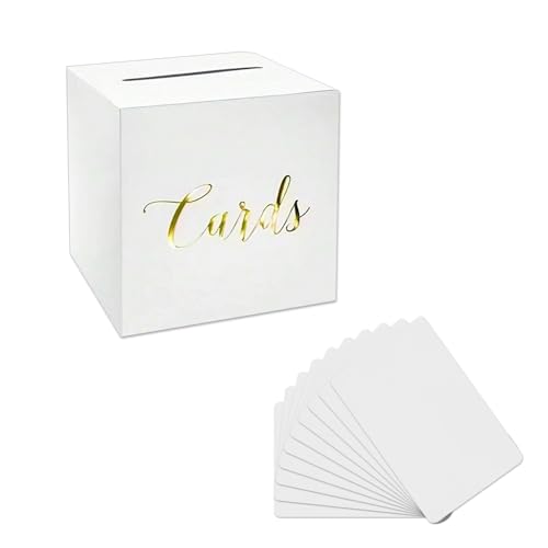 Kortlåda bröllop vit kortlåda med guldfoliedesign presentförpackning plånbokslåda med 10 stycken gratulationskort, bröllopskortslåda för pengar, brevlåda med plats för födelsedag, baby, dusch, fest,