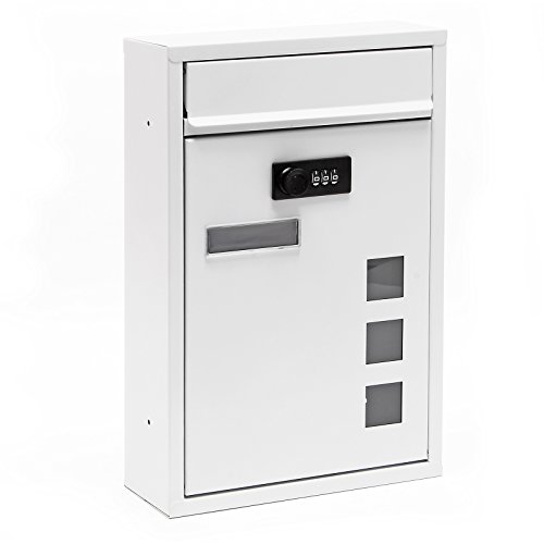 Modern Postlåda Vit med Kodlås Kombinationslås Väggmontering Brevlåda pulverlackerad 3-siffrig Kod