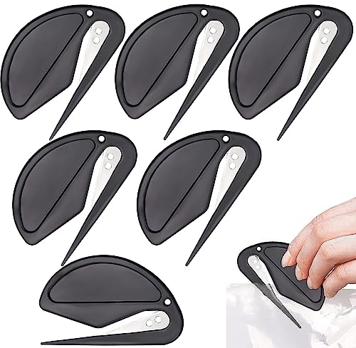 qingmeng Brevöppnare, 6 stycken brevöppnare, foliekniv, folieskärare med metallblad, plastflisor, effektiv post-öppnare, verktyg för förpackning, post och pappersskärning svart