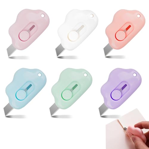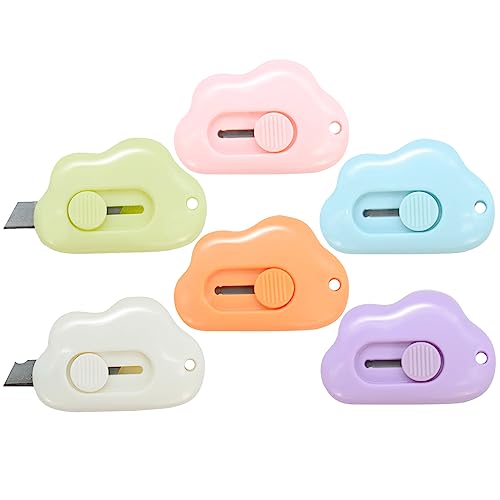CIOUYAOS 6 st brevöppnare, mini skärkniv, liten paketöppnare, verktygskniv, säkerhetslåda, skärare för ren tjej, estetisk skola, kontor, hus, stuff (6 moln)