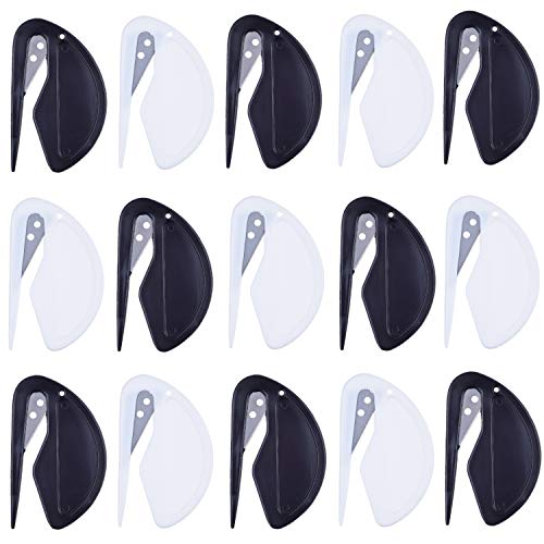 Kuvertöppnare – paket med 15 – brevöppnare/slitter – skarpt blad – snabbt, säkert och enkelt – bara sätt in och skjut – 8 x svart + 7 x vit – nödvändigt kontorsverktyg