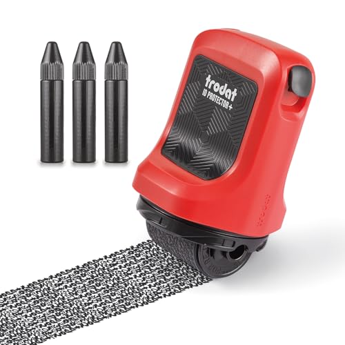 Trodat ID Protector+ Identitetsskydd Bläckrulle Stämpel – Säkerhetsstämpel med Inbyggd Låd- och Brevöppnare (3-i-1) inkl. 3 Påfyllningsbläck
