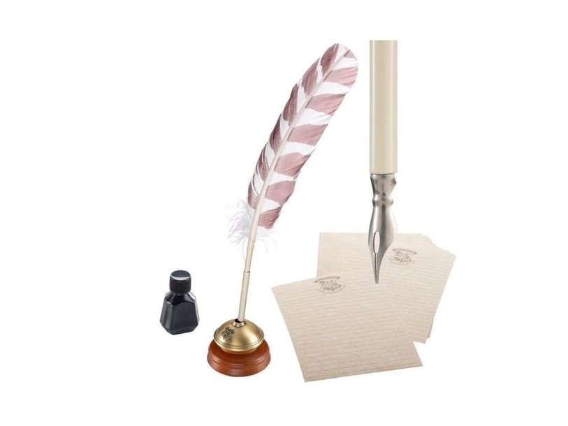 Harry Potter Merchandise Quill Pen English Calligraphy Feather Dip Quill Pen Writing Ink Set Brevpapper Presentförpackning med 5 Nibs(black)
