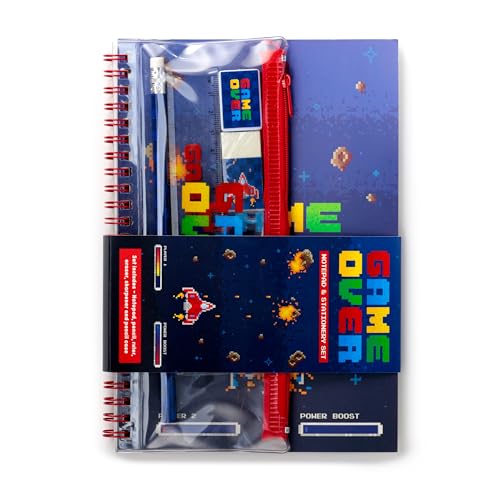 Puckator 6-delat brevpapper set block & Game Over pennfodral