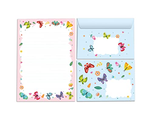 Bokstavsplatta med kuvert för barn fjärilar brevpapper set för flickor (A5 dyna med 25 ark + 15 kuvert)