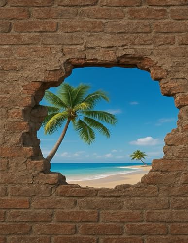 Lined Notebook – Tropical Beach 3D Cover with Old Brick Wall (8.5" x 11", 120 Pages, Wide Ruled): Wide Ruled Notebook | Large 8.5 x 11 inches | 120 ... Daily Writing | Unique Tropical Cover Design