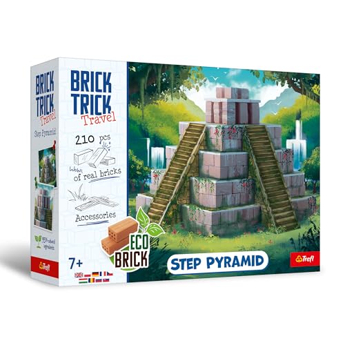 Trefl - Brick Trick Travel: Step Pyramid - Bygg med tegelstenar Travel, ECO Brick Blocks, 210 tegelstenar, återanvändbara, kreativt set för barn från 7 år