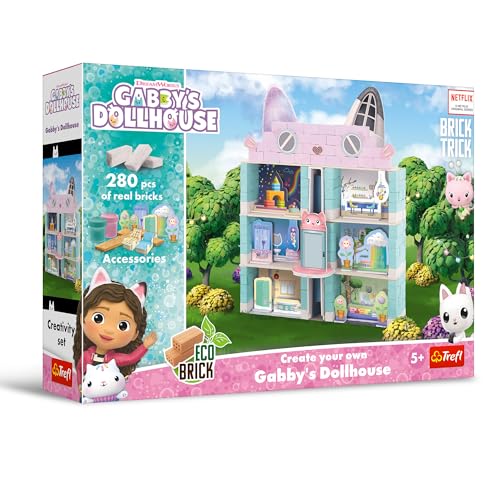Trefl - Brick Trick Gabby's Dollhouse: Gabby's Dollhouse - Bygg med tegelstenar, EKO-klossar av tegelsten, 280 tegelstenar, Återanvändbara, Kreativt set för barn över 5 år