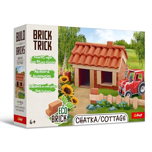 Trefl – Brick Trick: Stuga/Cottage – Bygg med tegelstenar, EKO-klossar av riktig tegelsten, 85 tegelstenar, Återanvändbara, Kreativt set för barn över 6 år