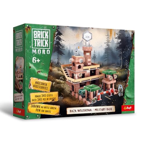 Trefl - Brick Trick Moro: Militärbas/Military Base – Bygg med tegelstenar, EKO-klossar av tegelsten, 340 återanvändbara tegelstenar, Kreativt militär set för barn över 6 år