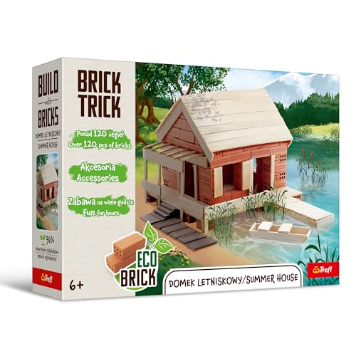 Trefl – Brick Trick: Sommarstuga/Summer House – Bygg med tegelstenar, EKO-klossar av riktig tegelsten, 120 tegelstenar, Återanvändbara, Kreativt set för barn över 6 år
