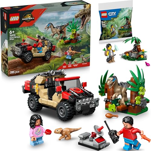 Lego Jurassic World Raptor: jaktjakt med terrängbilen – 76972 Lego Raptor med polybag-present, Jurassic-set, dinosaurie från 7 år – nyhet
