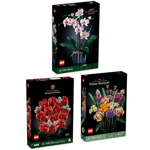 Lego Blommor-set: 10280 blombukett och 10311 orkidé och 10328 rosbukett | Botanisk kollektion | Ikoner