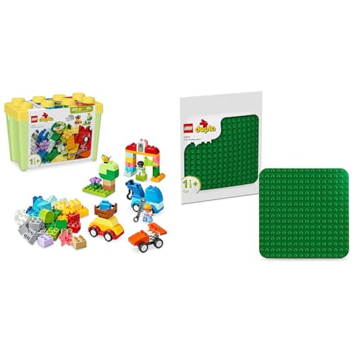 LEGO DUPLO Classic Cars and Trucks Brick Box + Green Building Plate Construction Toy Vehicle Set to Develop Fine Motor Skills Imaginative Play 10439 + 10460