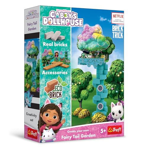Trefl - Brick Trick Gabby's Dollhouse: Fairy Tail Garden - Bygg med tegelstenar, Kattälvans hus, EKO-klossar av tegelsten, Återanvändbara, Kreativt set för barn över 5 år