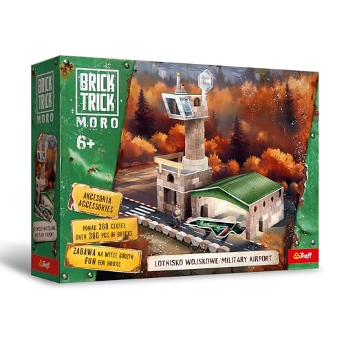 Trefl - Brick Trick Moro: Militär flygplats/Military Airport – Bygg med tegelstenar, EKO-klossar av tegelsten, 360 återanvändbara tegelstenar, Kreativt militär set för barn över 6 år