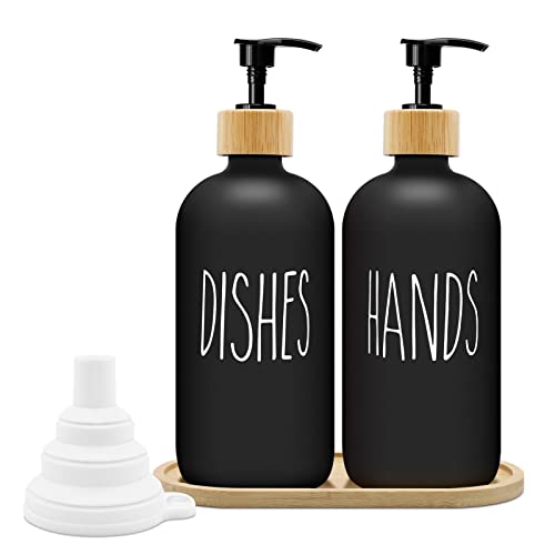 Soap Dispenser Matt Black Set 500ml Tvål Dispenser Glas med Brick Dishwashing Liquid Dispenser Schampo Dispenser Tvål Dispenser Tvål Dispenser för Kök och Dusch (Svart x 2)