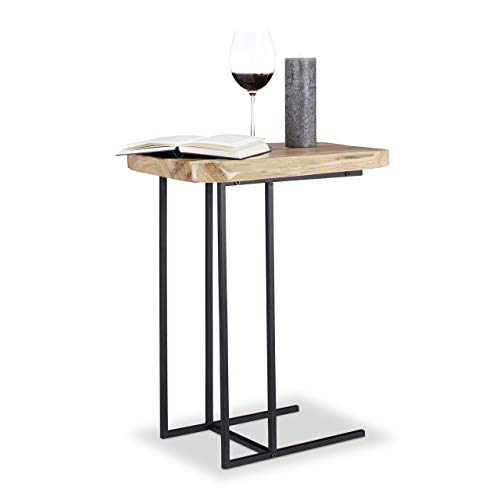 Relaxdays sidobord i trä, rustikt accentbord, praktisk bricka, elegant cederträ, H x B x D: 60 x 34 x 49,5 cm, naturlig