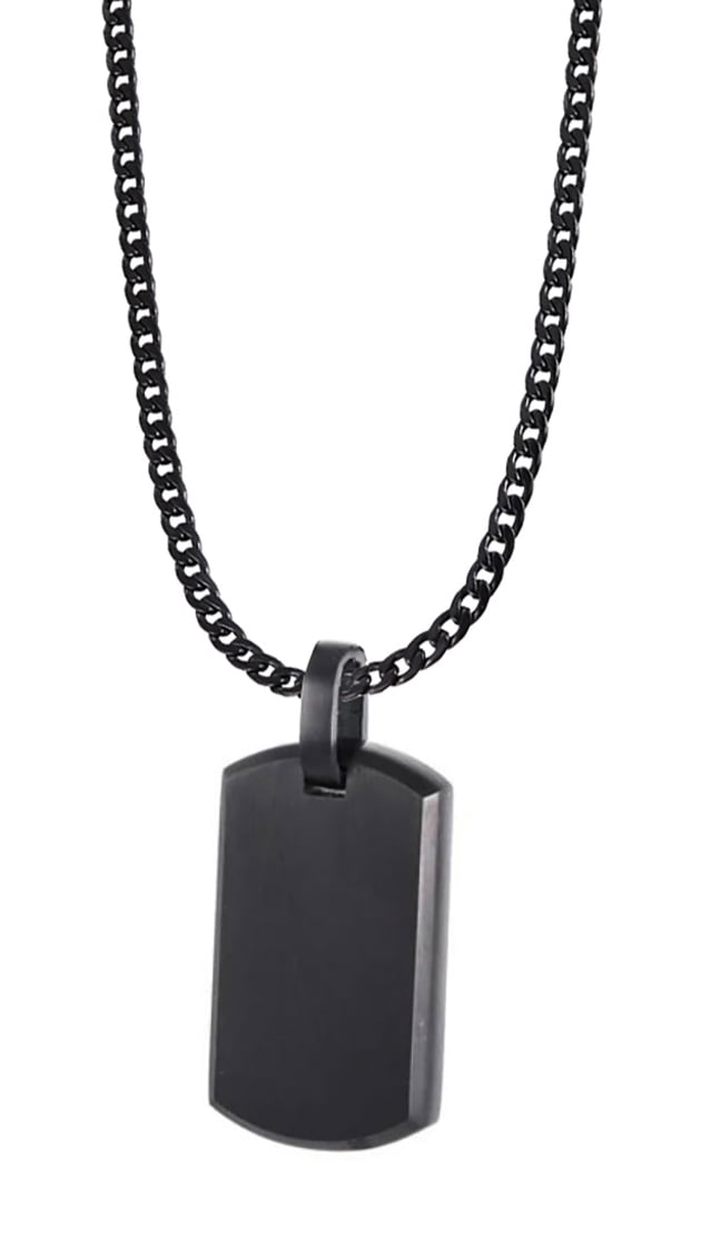 Lykka Strong mattsvart stålhalsband med bricka 50 cm