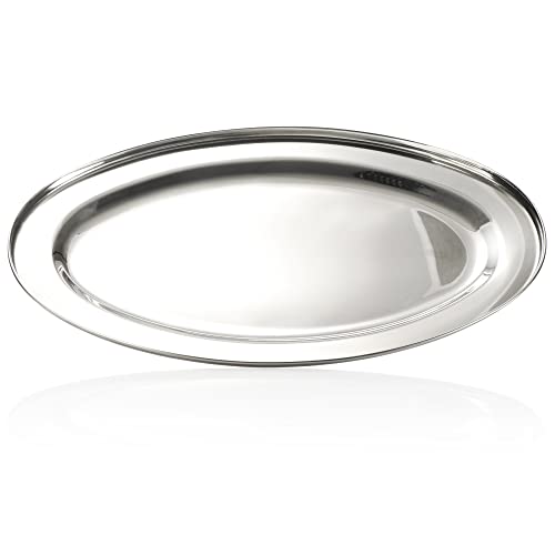 COM-FOUR® serveringsbricka i rostfritt stål - oval bricka för servering och dekoration - glänsande serveringsbricka (40x26cm - 1 st)