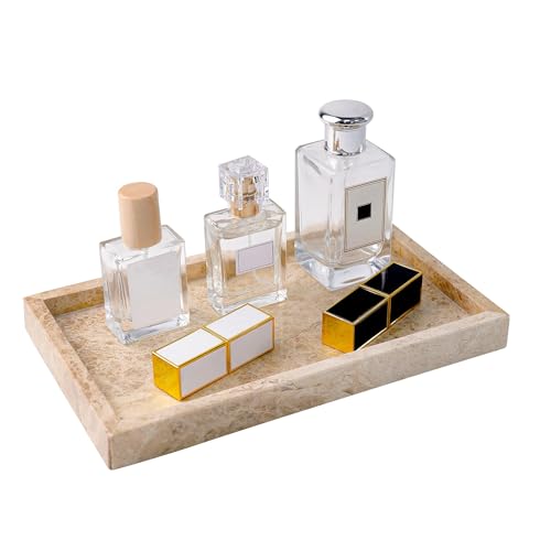 WORHE Italien Naturlig marmor sminkbricka rektangel dekorativ bricka för parfym kosmetiskt ljus kök arrangör soffbord bricka ljusbrun (WH038)