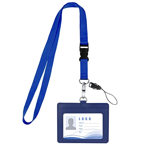 Vicloon Korthållare med snodd, 2-sidig PU-läder ID-bricka hållare med ID-fönster och kortplats halsband, kontor, avtagbar snodd, ID-bricka för nycklar (mörkblå)