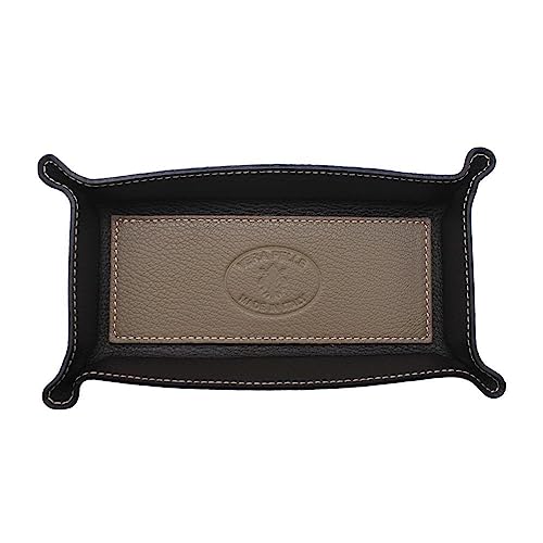 Boshiho läderbricka, läder Catchall nyckel telefon myntbox betjänad bricka för nyckelbyte kady, sängbord liten förvaring behållare låda brun organisatör Svart