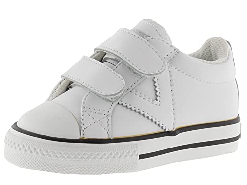 Victoria 1065161-KIDS basketboll med låg stam effekt svartvitt läder och repor bricka för barn, Vitt och blått, 31 EU