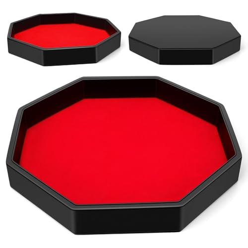Belle Vous Svart PU-läder och Rött Sammet Åttkantig Förvaringsbricka för Tärningar - Tärningsbricka för Sällskapsspel som RPG och DND/D&D - En Catchall Bricka för Smycken