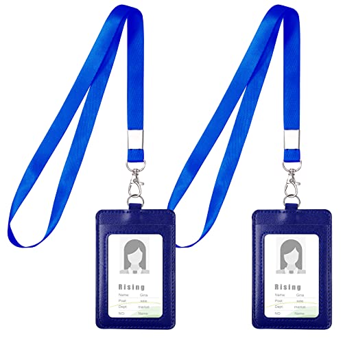Vicloon 2-pack vertikal ID-bricka i PU-läder med genomskinligt fönster och kreditkortsfack, avtagbar nylonsnodd (mörkblå)