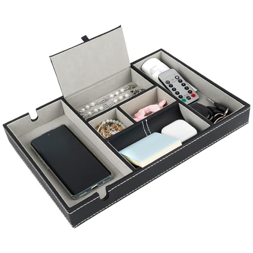 Yocisun Läder Valet Bricka Förvaringsbricka Skrivbord Organizer Nattduksbord Organisatör Herrtillbehör för mynt, plånbok, Smycken, Nycklar, Klockor (svart)
