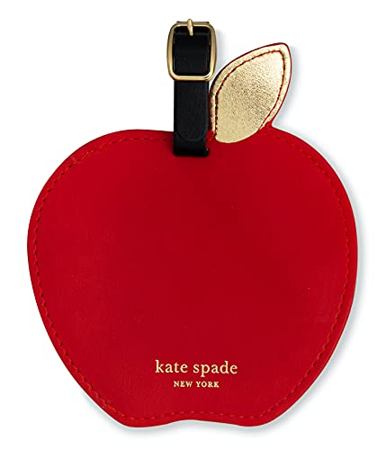 Kate Spade New York Rund bagagelapp i vegansk läder, hållbar ID-bricka för resväska, för kvinnor, äpple