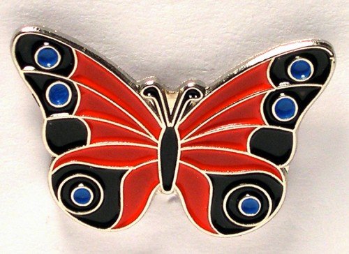 Metall emalj pin bricka brosch fjäril röd & svart/blå (25 mm)