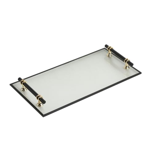 Romimex Bricka transparent guld metall glas 40 x 4 x 20 cm