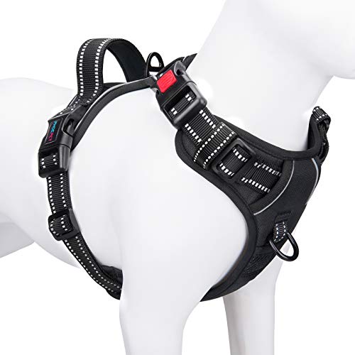 Phoepet Anti-drag-hundsele, reflekterande, justerbar, med träningshandtag, namnID-bricka, 2 metall-linnekrokar, 3 snäppspännen, lätt att sätta på och ta av, XS, svart