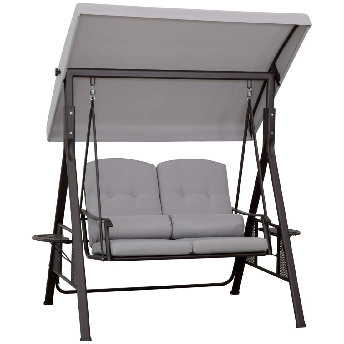 2-sits verandagunga med solskydd, kuddar och bricka, modern trädgårdsgunga av metall och polyester, grå, 162x118x173cm