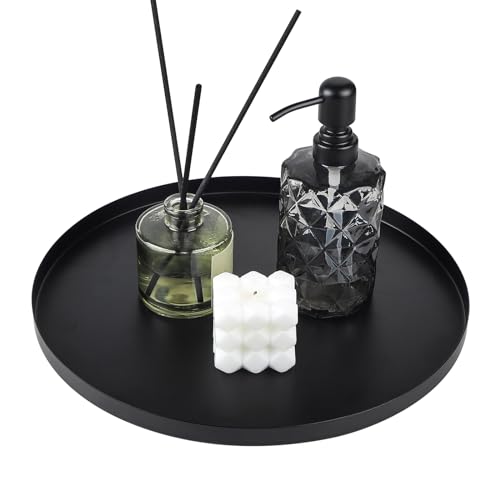 ASelected dekorativ bricka svart 30 cm rund bricka kosmetisk bricka av metall för smycken smink dessert ljus